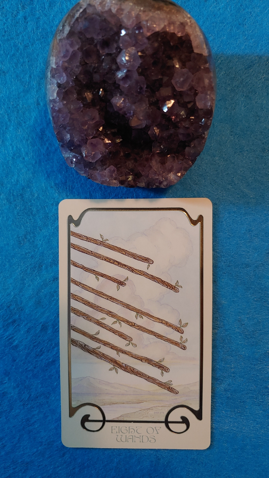 It might seem redundant for Card 9 to be the Eight of Wands as this is a card of endings and conclusion, especially since it follows the Major Arcana card Death. Card 8, Death is about Immediate Steps and Card 9 is the Overall Approach. Spirit is saying to us that after you put the past in the past, bury it and release it, do not return to it.